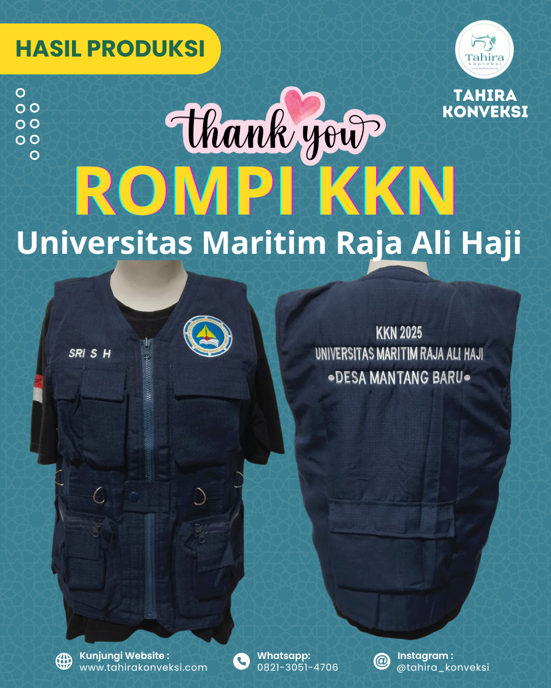 “ Pertamakali bikin kaos pakai jasa konveksi Alhamdulillah hasilnya memuaskan jahitannya rapih, harga terjangkau dan pelayanannya bagus juga cepat proses produksinya . Terimakasih tahira konveksi kedepannya kalau order pasti ke tahira konveksi lagi ”