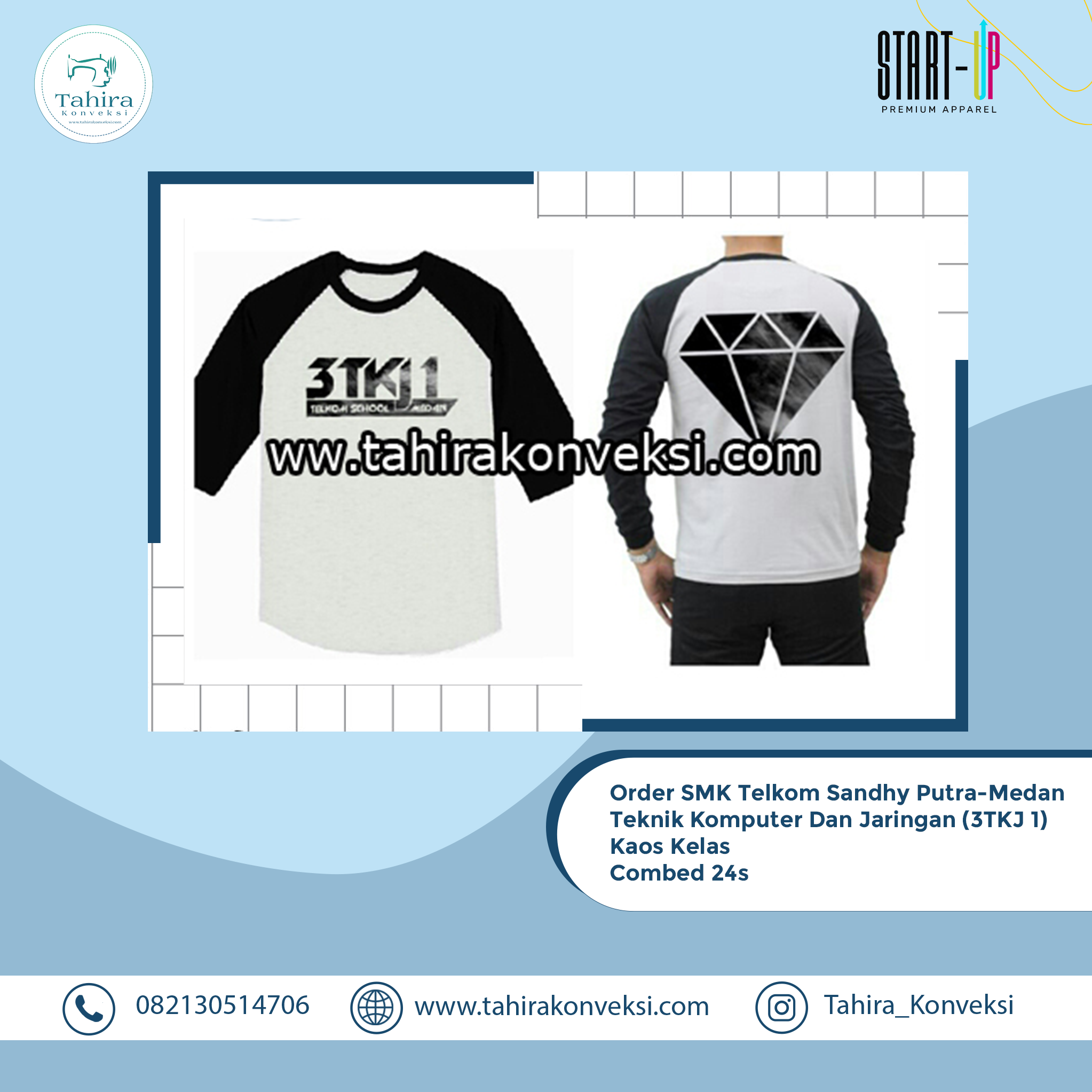 “ Pertamakali bikin kaos pakai jasa konveksi Alhamdulillah hasilnya memuaskan jahitannya rapih, harga terjangkau dan pelayanannya bagus juga cepat proses produksinya . Terimakasih tahira konveksi kedepannya kalau order pasti ke tahira konveksi lagi ”